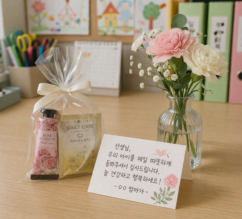 이번 5월 가정의 달에는 정성껏 고른 작은 선물 위에, 엄마의 진심이 담긴 짧은 편지를 꼭 곁들여 보세요. 그 어떤 비싼 선물보다 선생님의 마음속에 오래도록 남는 최고의 선물이 될 거예요. 여러분의 따뜻한 마음이 선생님께 잘 전달되기를 응원합니다!