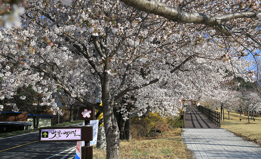 자양면으로 향하는 길: 영천호반을 품은 벚꽃