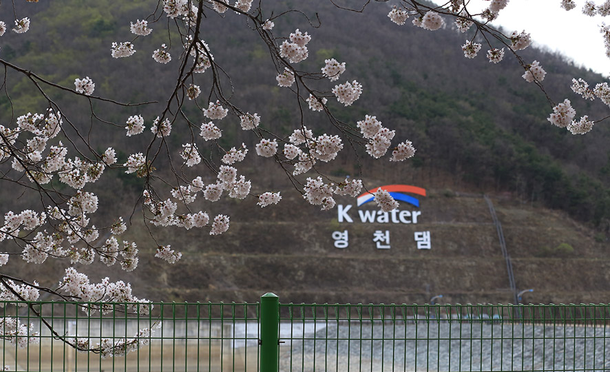 영천댐 하류공원에서 시작되는 영천댐 벚꽃백리길은 4월 초가 가장 아름답습니다.
