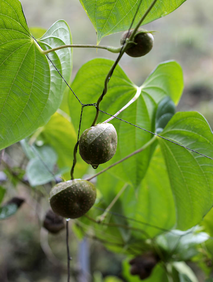 하늘마는 열매마 또는 넝쿨마라고도 불립니다. 학명은 Dioscorea bulbifera입니다. 일반적인 마(산약)와 달리 뿌리가 아닌 줄기의 잎겨드랑이에 덩이줄기 형태로 열리는 것이 특징입니다. 아열대성 기후를 선호하지만, 우리나라 전국에서도 재배가 가능합니다. 그 효능이 알려지면서 재배 농가가 늘고 있습니다.